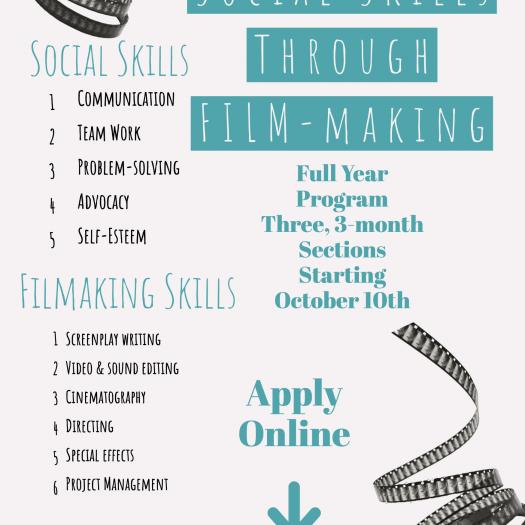 A year-long filmmaking program that teaches the fundamentals of filmmaking while also practicing valuable social skills. A social skills group using a unique role-playing game to teach social skills.